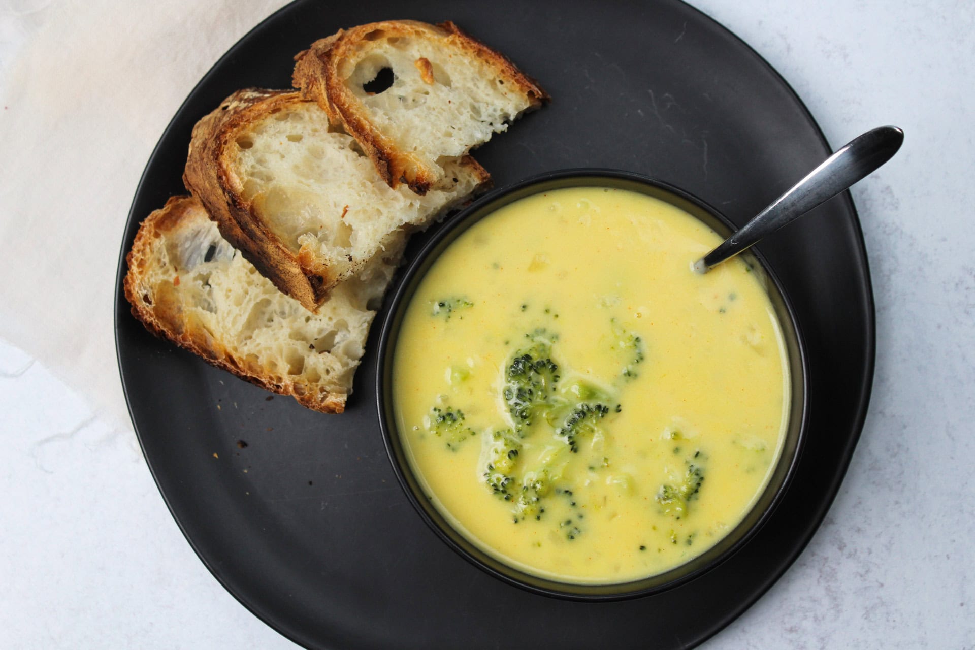 Broccoli cheddar soup is one of those perfect meals where you get to indulge in something ultra comforting and cozy, but not feel too bad about it since you’re still eating your veggies! Made with a simple roux instead of cream, our broccoli cheddar soup is super satisfying without being too heavy.