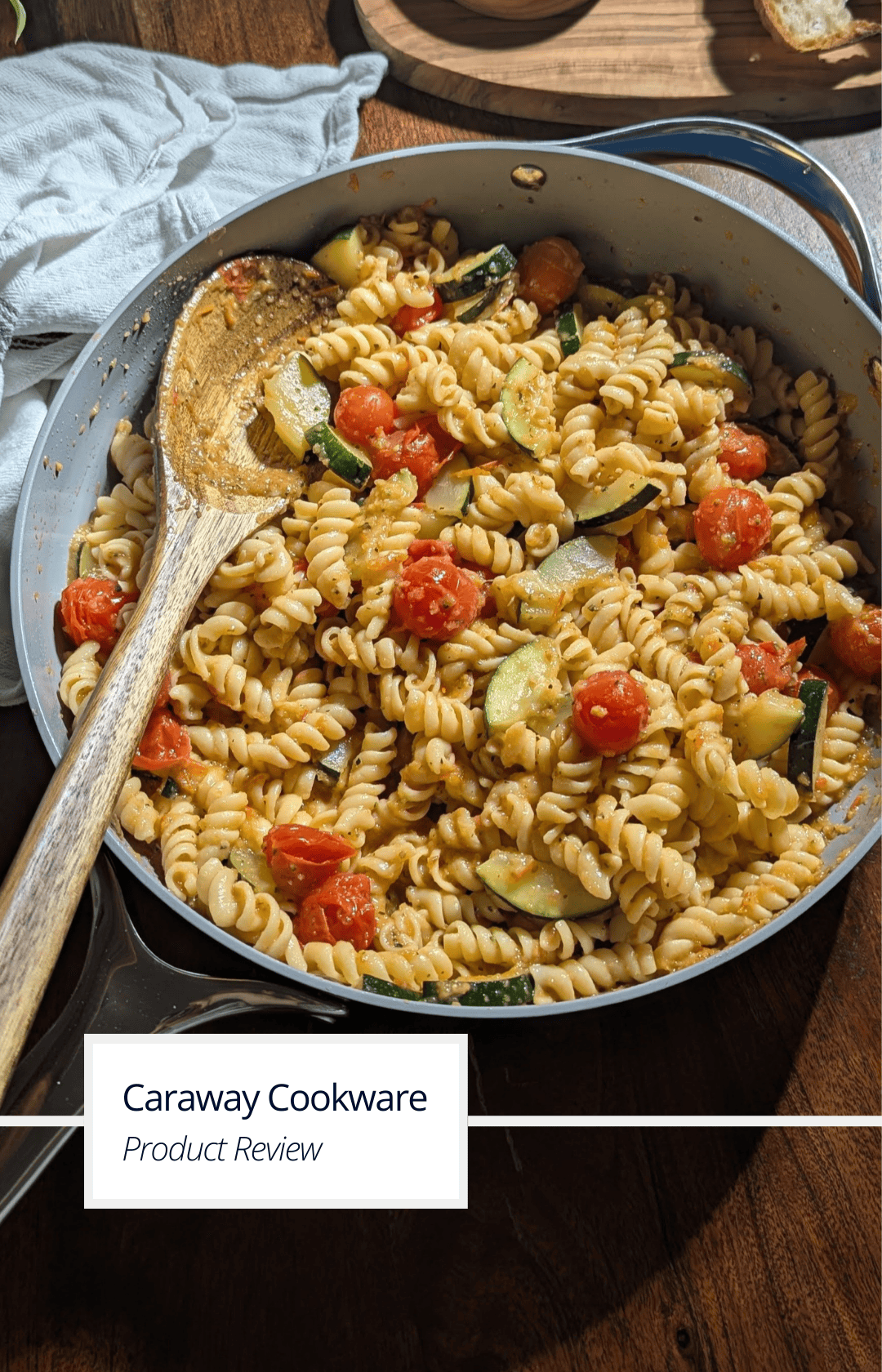 We recently received the Caraway 12-piece essential cookware set as a gift after joining their affiliate program. We don’t like to promote products we haven’t used ourselves, so we were excited to try their cookware and see if it lived up to the hype. Spoiler alert: it does (even with a few minor flaws).